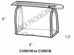 8" x 6" x 1.5", 6 Gauge Double Polished Clear Vinyl, White Or Black Sewn Binding And Zipper, Nylon Zipper Goes Through The Top And Extends Beyond One Side, Has Carry Loop At Other End, 500 per Carton, 2 Carton Minimum Phthalate Free Double Polished Clear Vinyl CV861B-PF - Black Seams CV861W-PF - White Seams